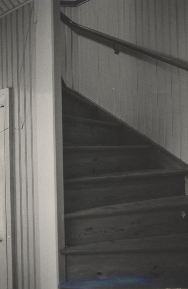 Inuti Jeanssons jaktstuga, trappan till övervåningen.