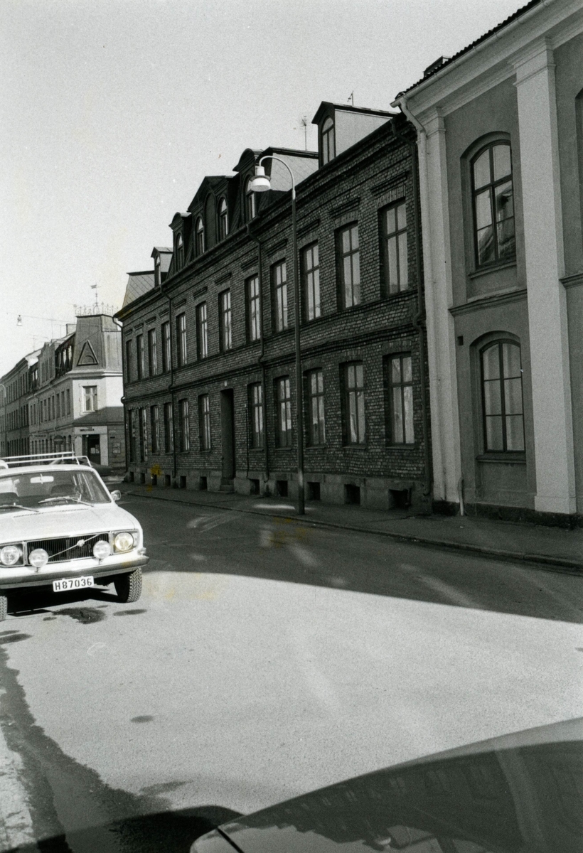 Kvarter Tenngjutaren 3, på Strömgatan. Missionskyrka till höger. Tegelbyggnaden till vänster är numera riven.
