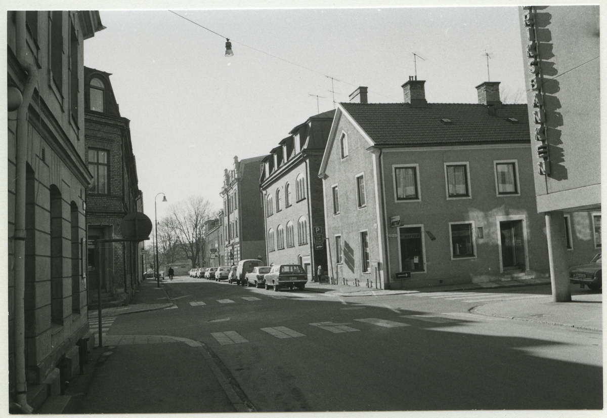 Riksbanken till höger. Strömgatan från vänster. Till vänster kvarter Tenngjutaren, till höger kvarter Brandvakten.