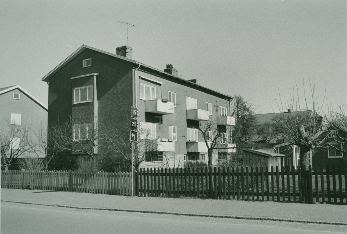 Hyreshus med balkong och staket vid Öhnellsgatan 24 i kvarter Galjonen 3 i Ängö.