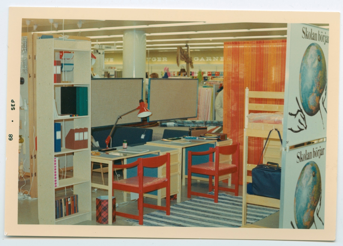 Skyltning inne på Domusvaruhuset i Kalmar, inför skolstarten 1968.