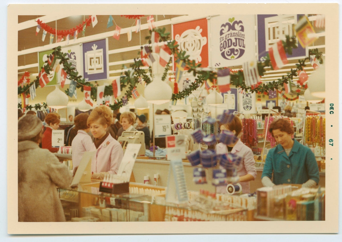 Parfymavdelningen på Domus i Kalmar, under julhandeln 1967.