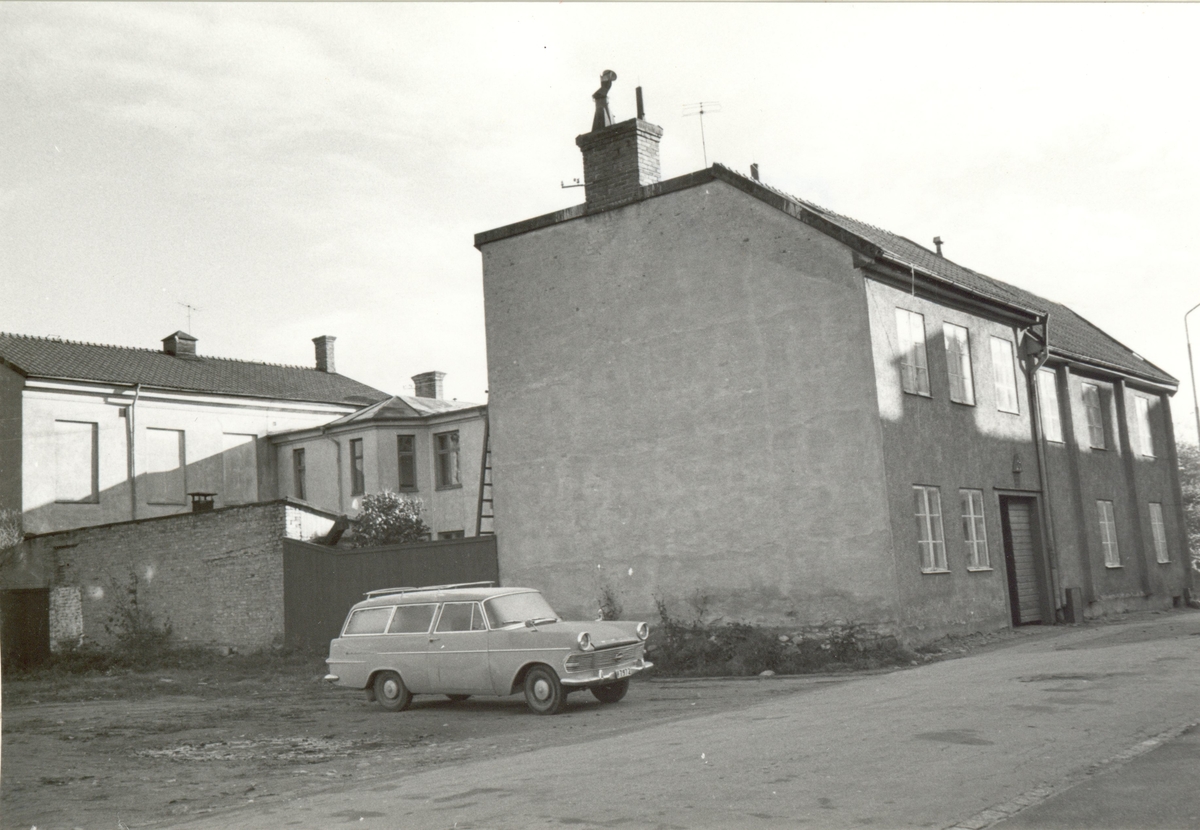 Motiv från Södra Malmgatan 18. Bostadshus och bil.