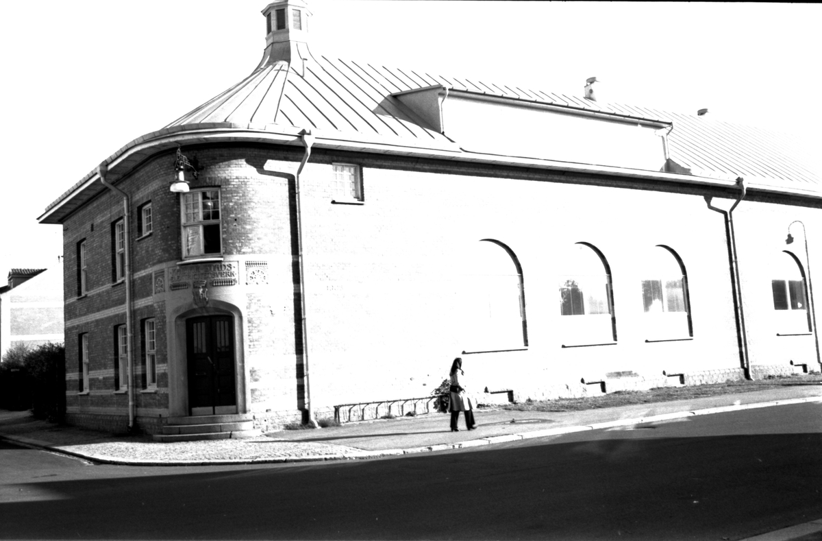 Kalmar stads elverk från 1908. Armaturen över ingången är original och finns ännu (2018) kvar.