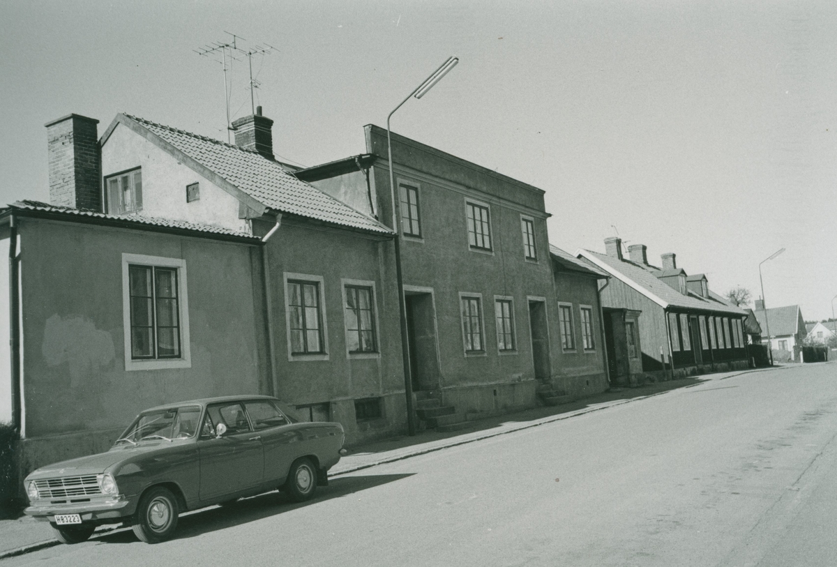 Bostadshus med putsad fasad och en bil på Öhnellsgatan 17 i Ängö.