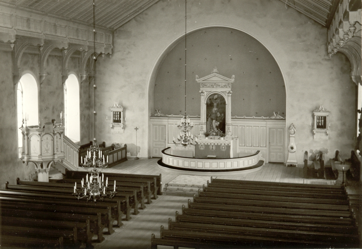 Interiör från långhuset i Hannäs kyrka innan restaurering.