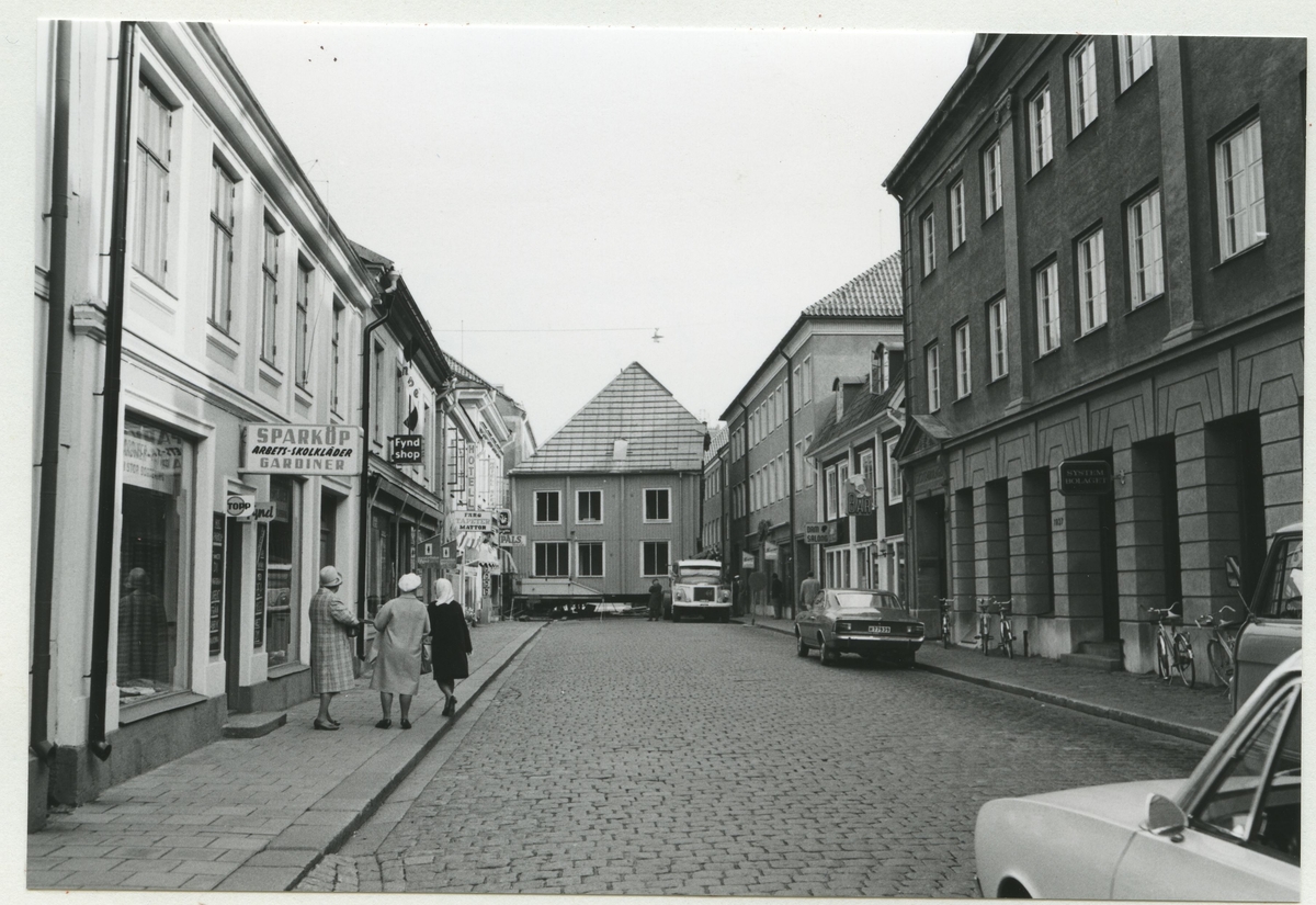 Areskogska husets flyttning 30.9. - 3.10. 1970. Huset utdraget på Södra Långgatan,