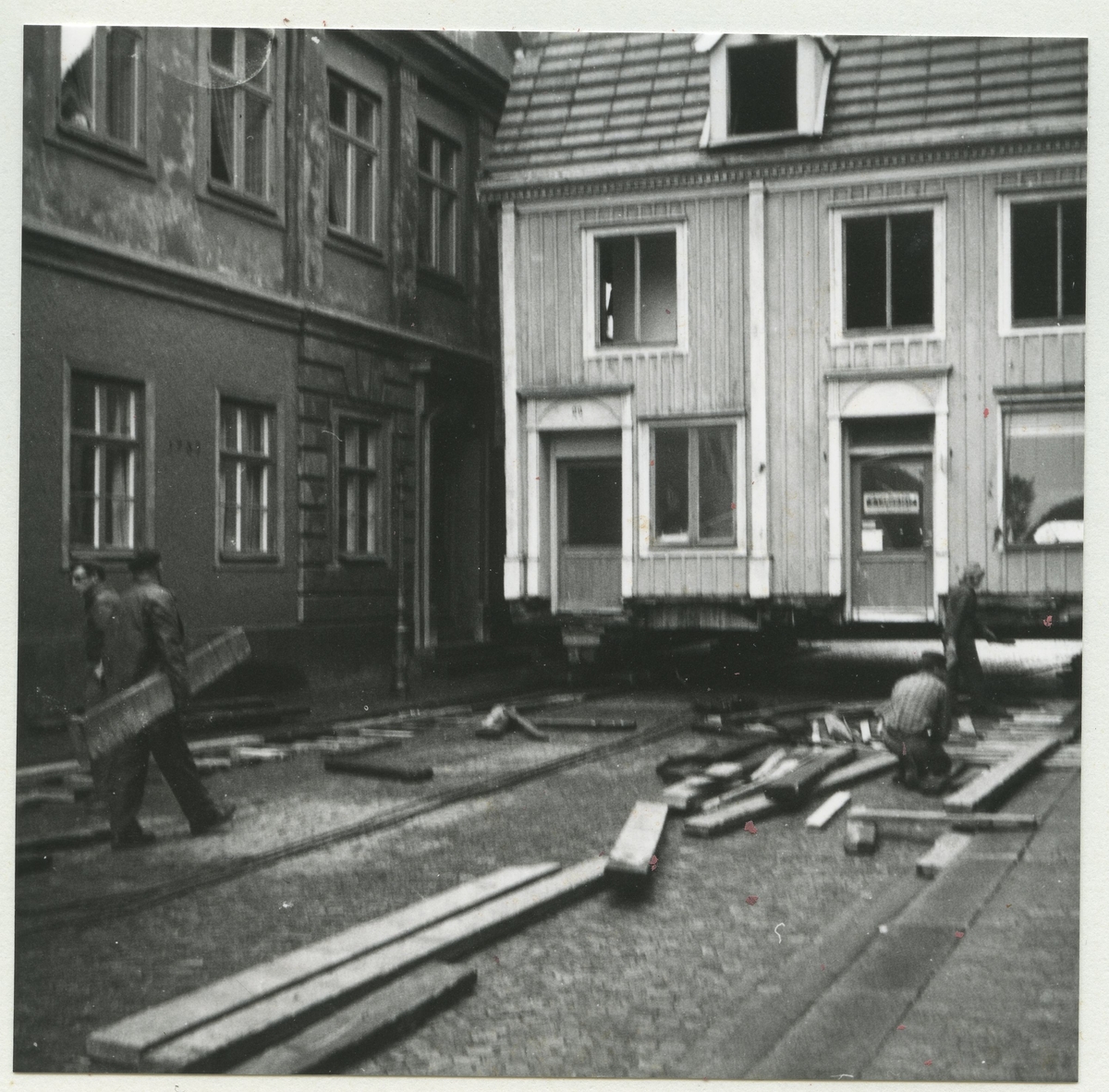 Areskogska husets flyttning 30.9. - 3.10. 1970. Huset på Västra Sjögatan.