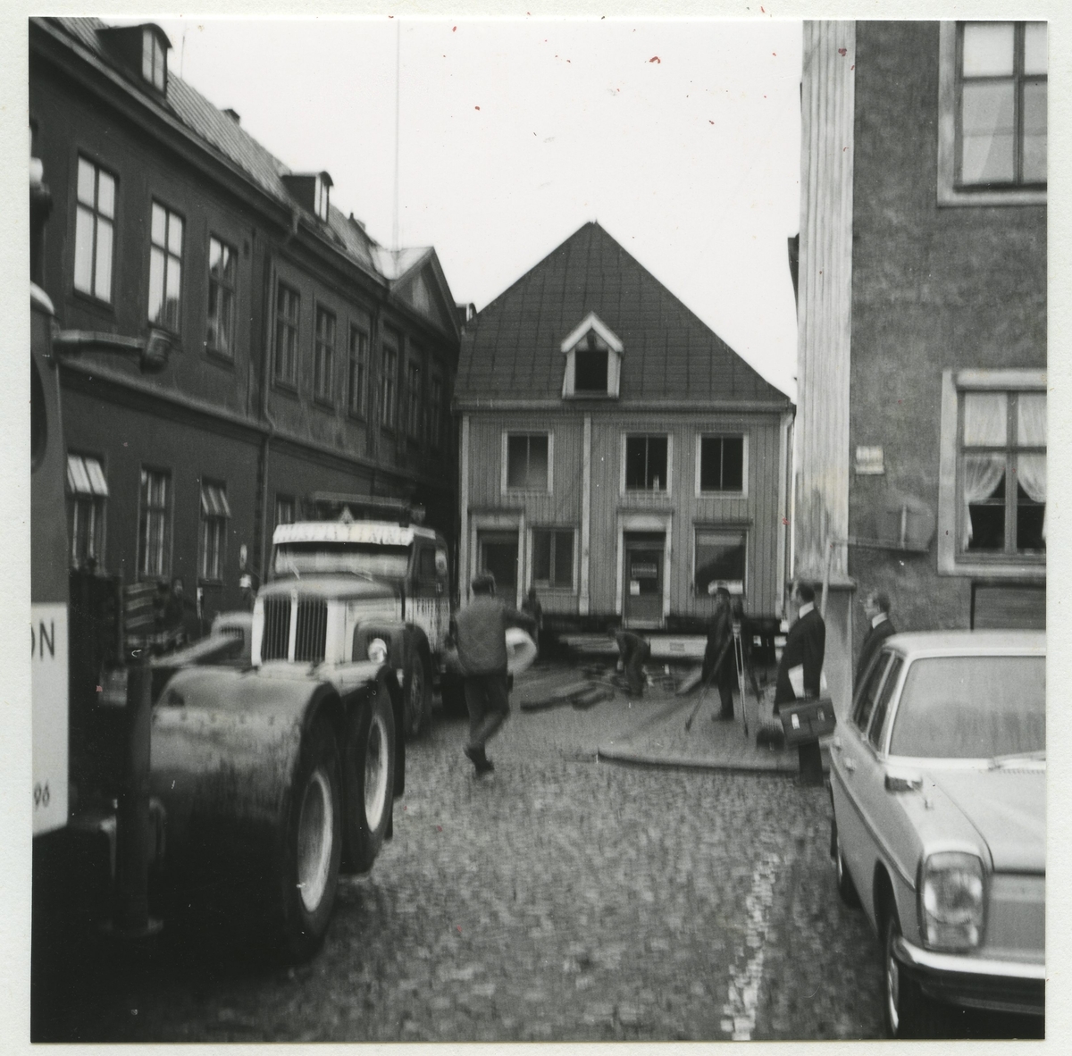 Areskogska husets flyttning 30.9. - 3.10. 1970. Huset på Västra Sjögatan.