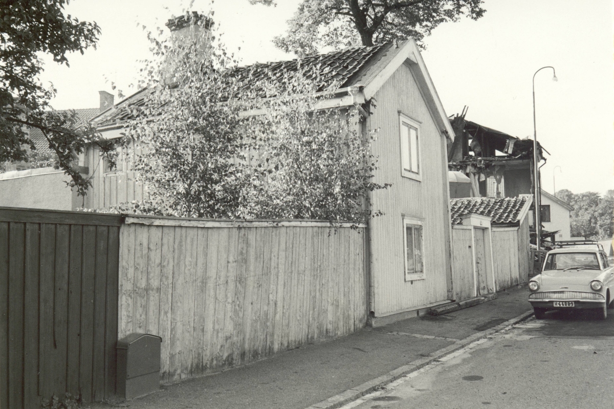 Fastigheten Västerlånggatan 23 i september 1970, före rivningen.