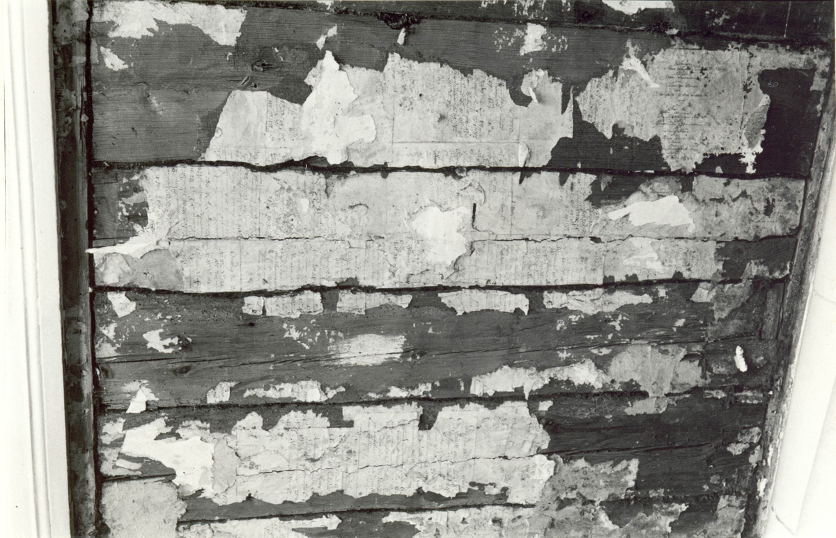 Salen. Detalj av pappersfragment på östra väggen i Krusenstiernska gården.
