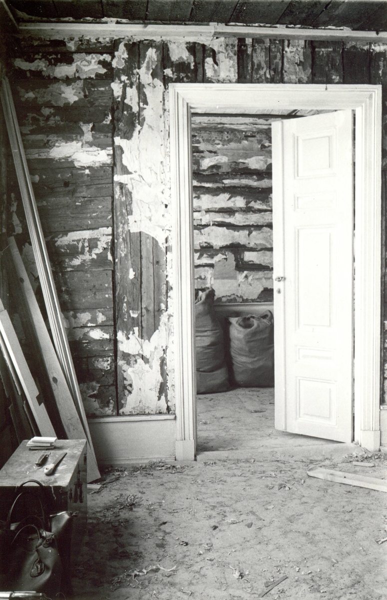 Salen i Krusenstiernska gården. Östra väggen, dörren mot kammaren.
