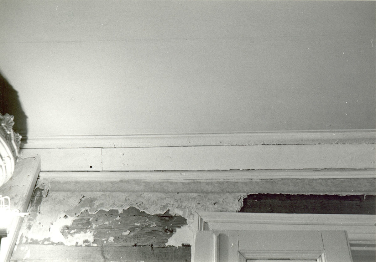 Rester av tapet vid taklisten i salongen på Krusenstiernska gården.