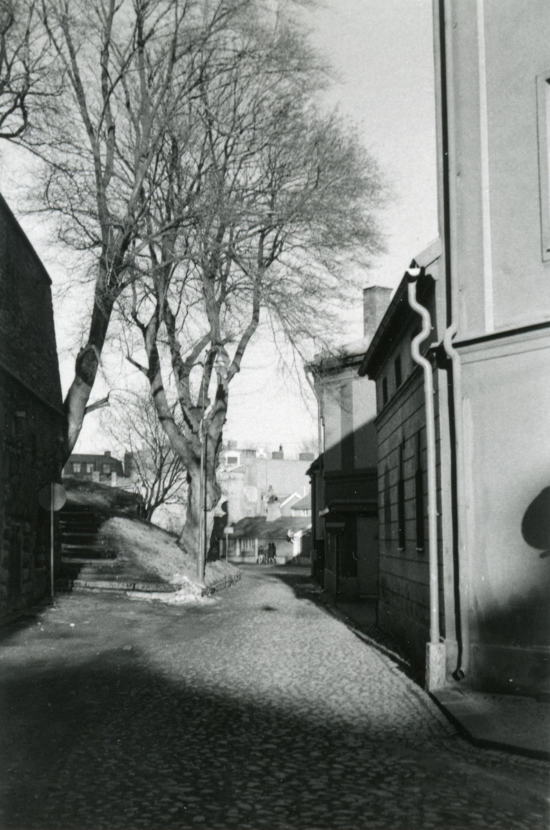 Västra Vallgatan som är av kullersten. I närheten av Västerport.