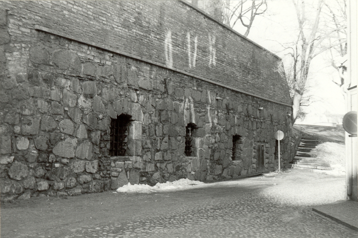 Befästningsverk vid Västerport. Västra Vallgatan som är av kullersten.