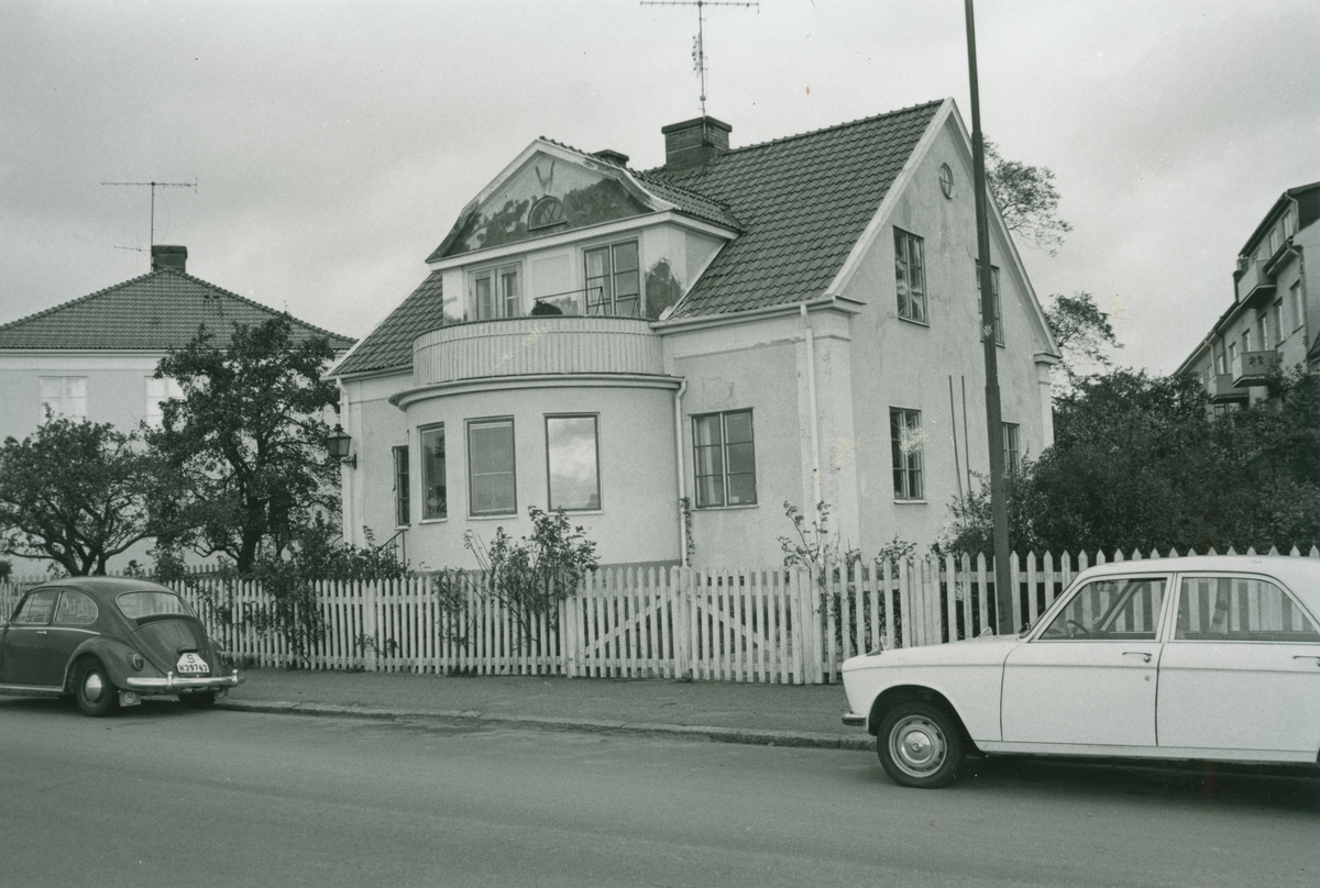 En villa på Krausgatan med en halvcirkelformad balkong.