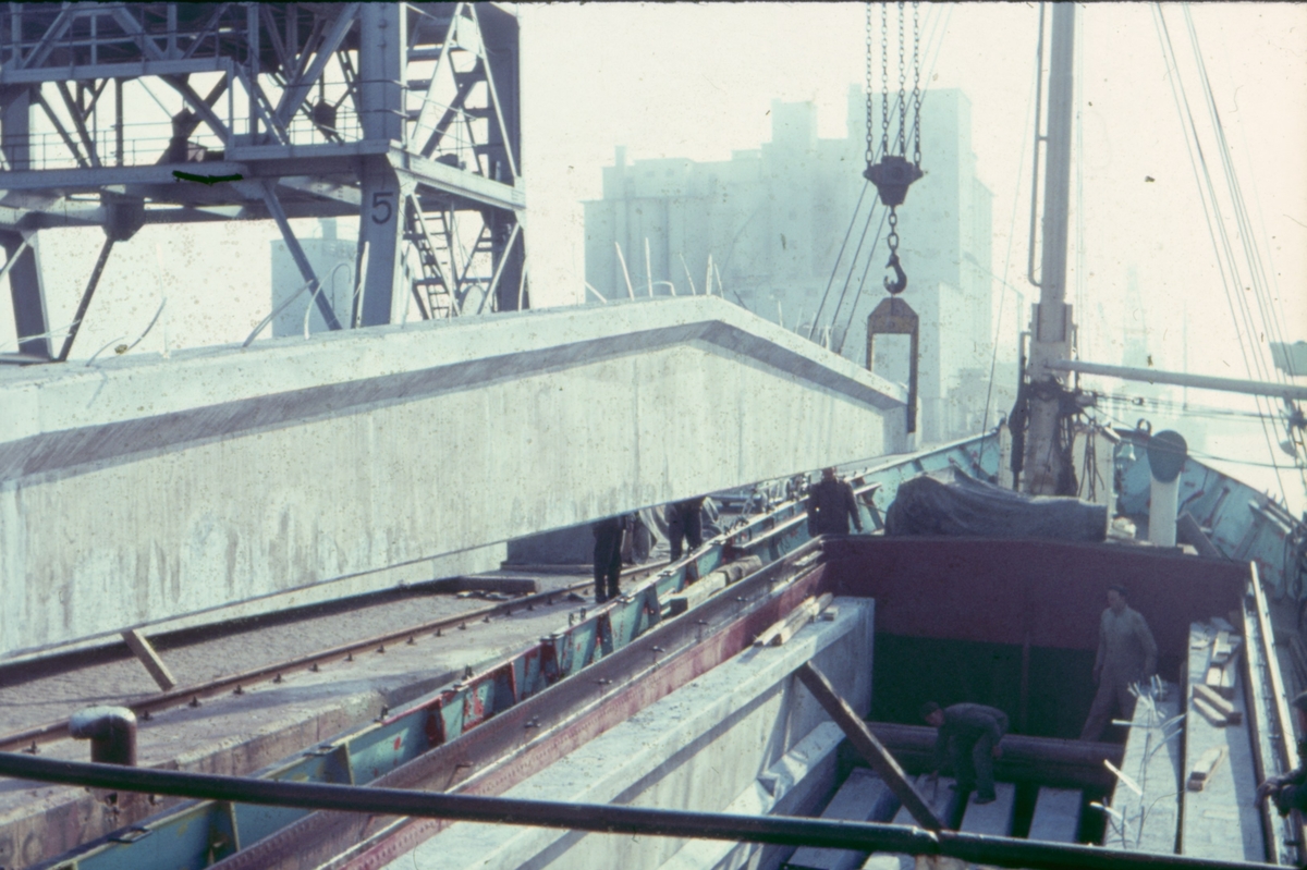 Balkar som ska levereras med fartyget "Lisa" till LM Ericssons nya fabrik, omkring 1968.