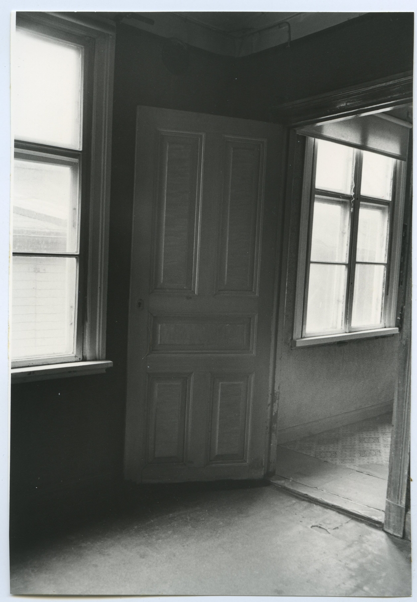 Dörr mellan rummen i tillbygget i en fastighet på Fiskaregatan.