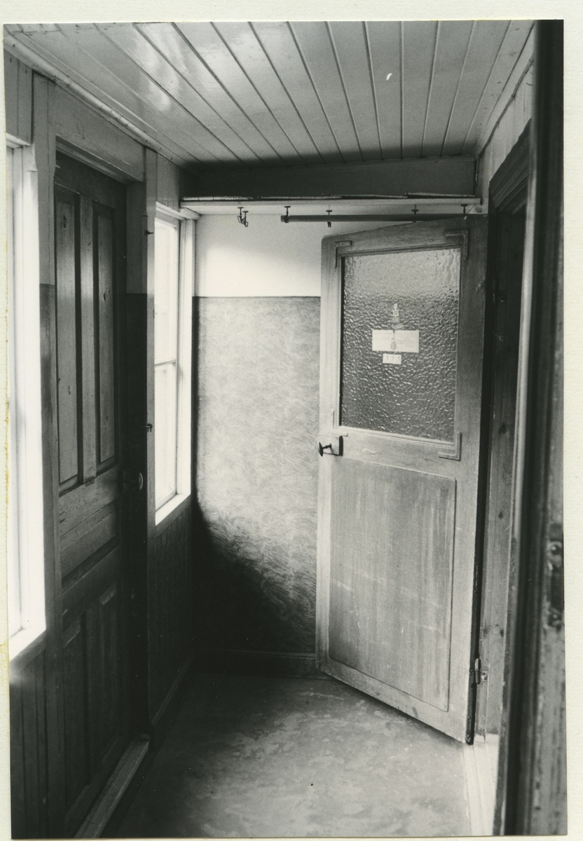 Förstugan i sista tillbygget. Marmorering i grönt.