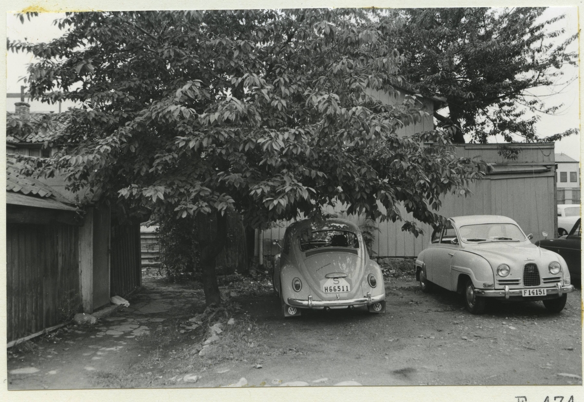 Tomten bakom Gesällen nr 14, Fiskaregatan 33. Till vänster i den ymniga grönskan skymtar Gesällen 12 och 11.