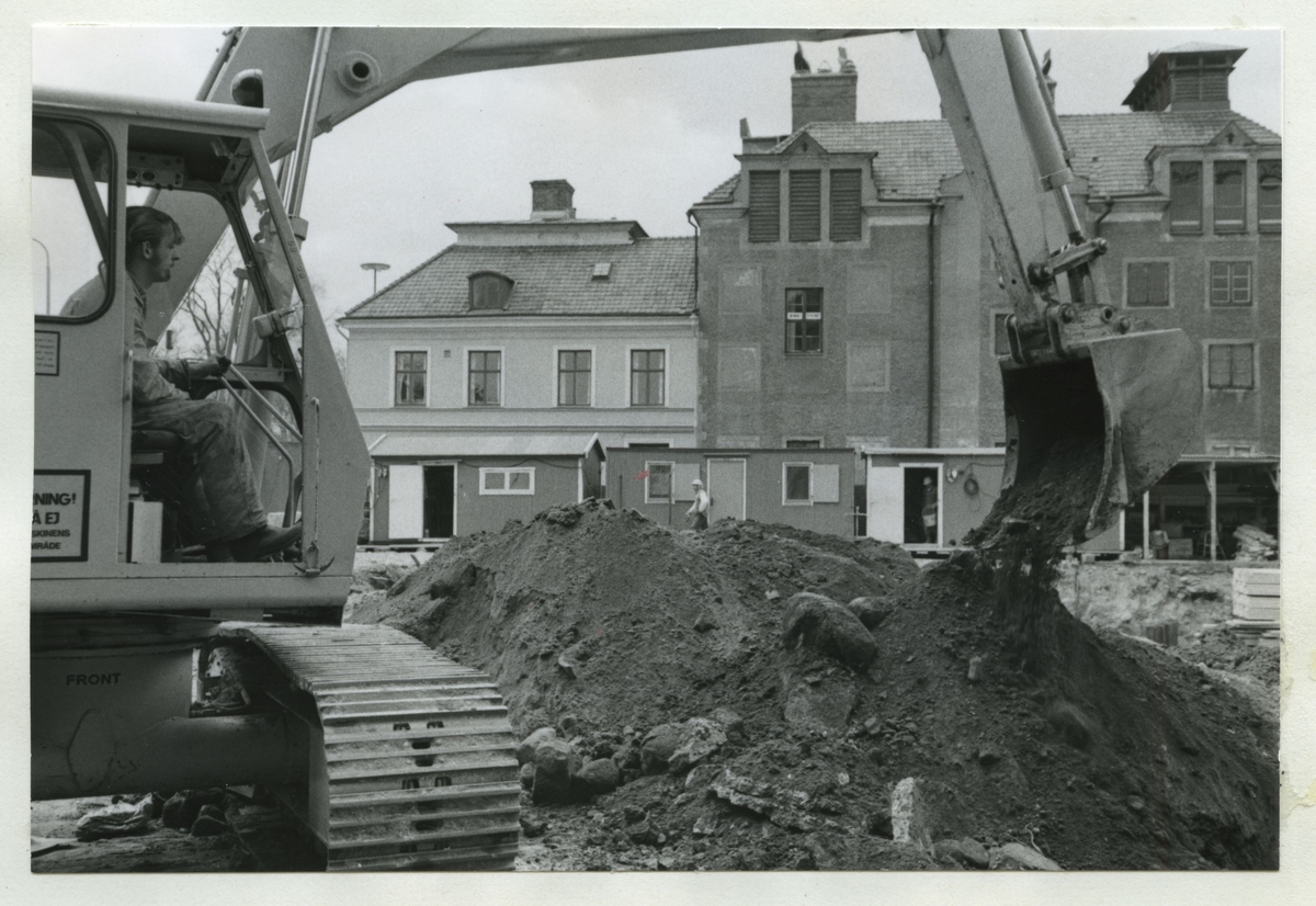 Inför utbyggnaden av hotell Witt. Grävning med grävskopa.