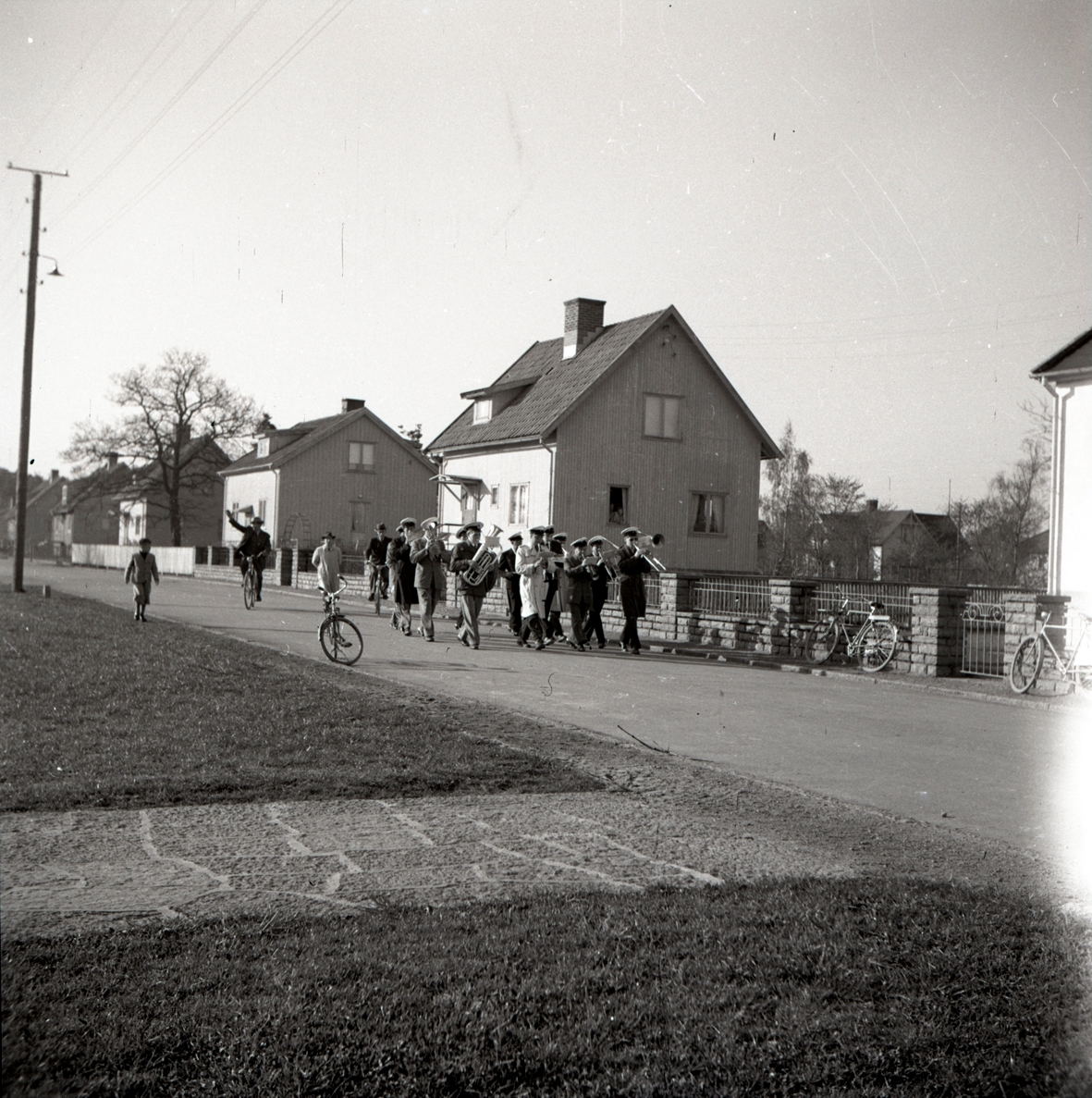 Blåsorkester spelar vid första majfirande i Borgholm.