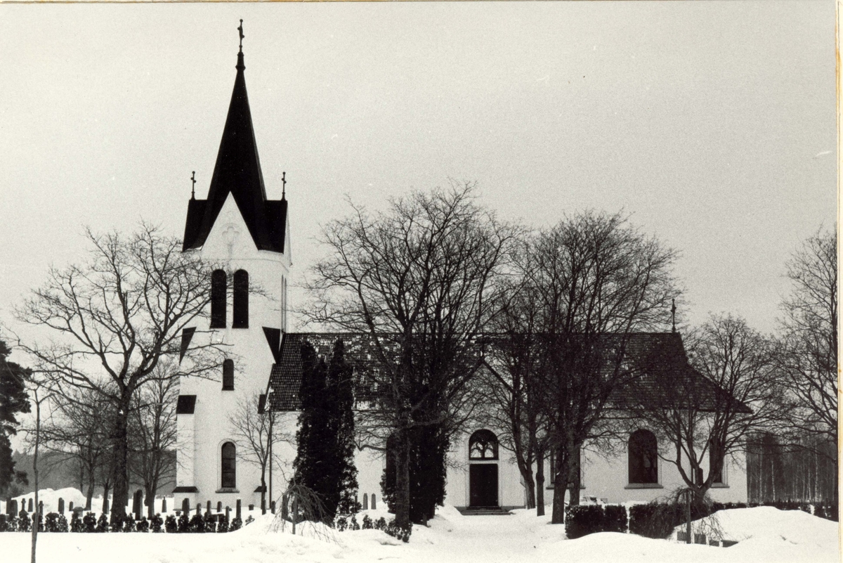 Fågelfors kyrka i vinterskrud.