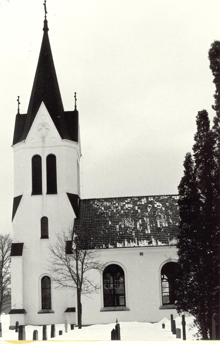 Fågelfors kyrka i vinterskrud.