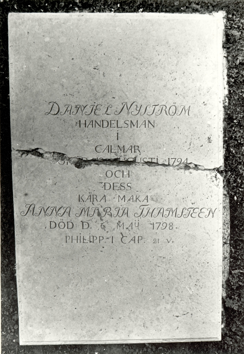 Texten lyder: Daniel Nyström Handelsman i Calmar