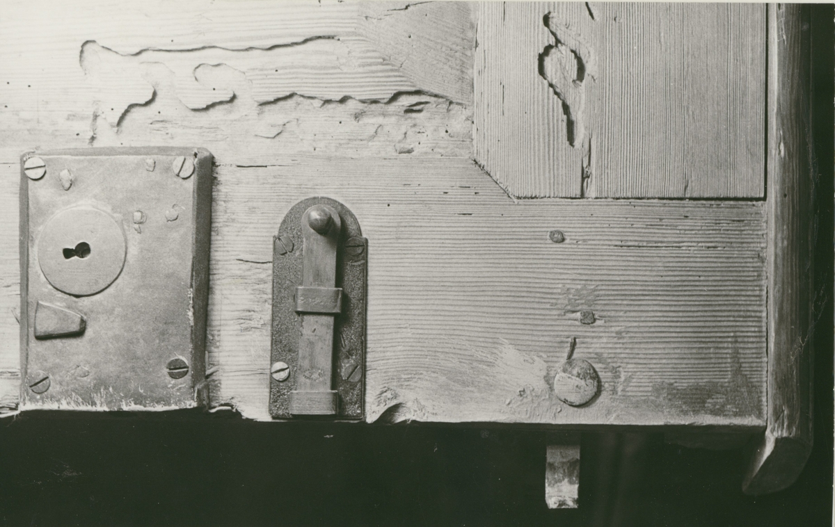 Bänkinredningen i slottskyrkan; detalj med lås och skjutregel.