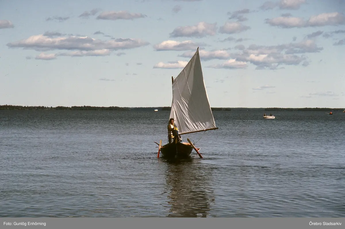 Hjälmaresnipa med segel ute på Hjälmaren, 1992