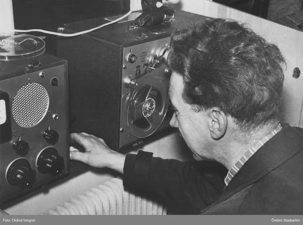 Man vid ljudanläggning, 1950-tal