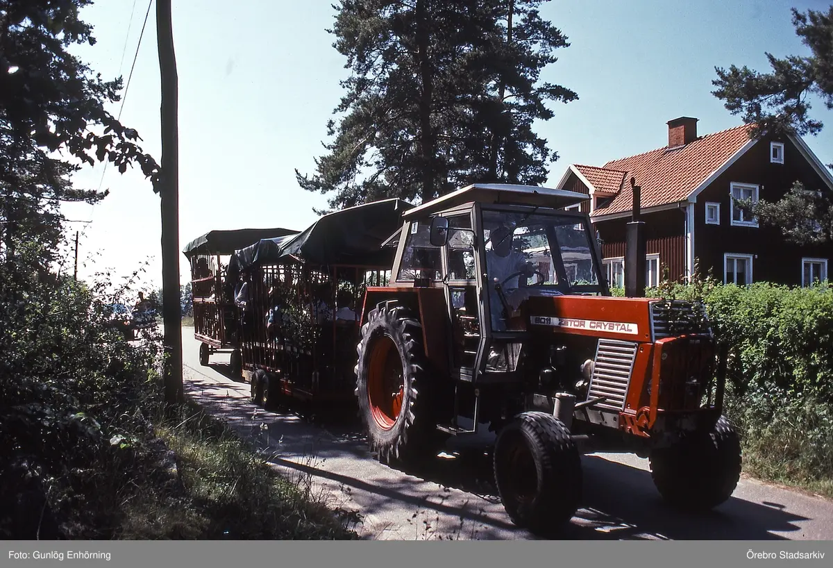 Rundtur på Vinön med höskrinda efter traktor, 1991