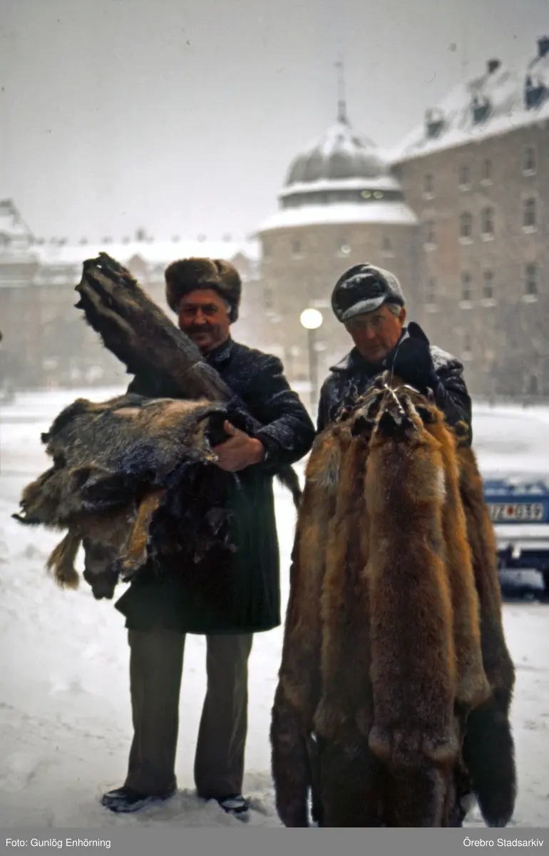Rävskinnsförsäljare under Hindersmässan, 1990
