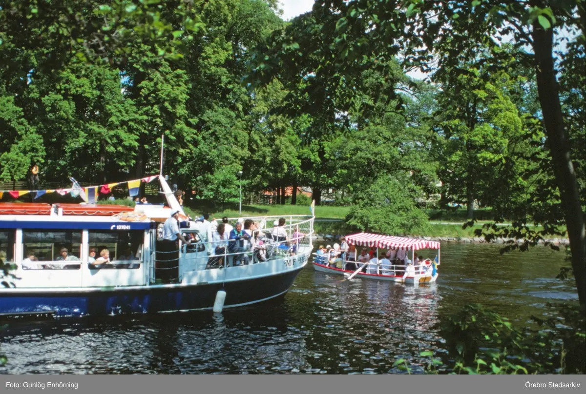 M/F Hega och roddfärjan Wictoria i Svartån, 1989