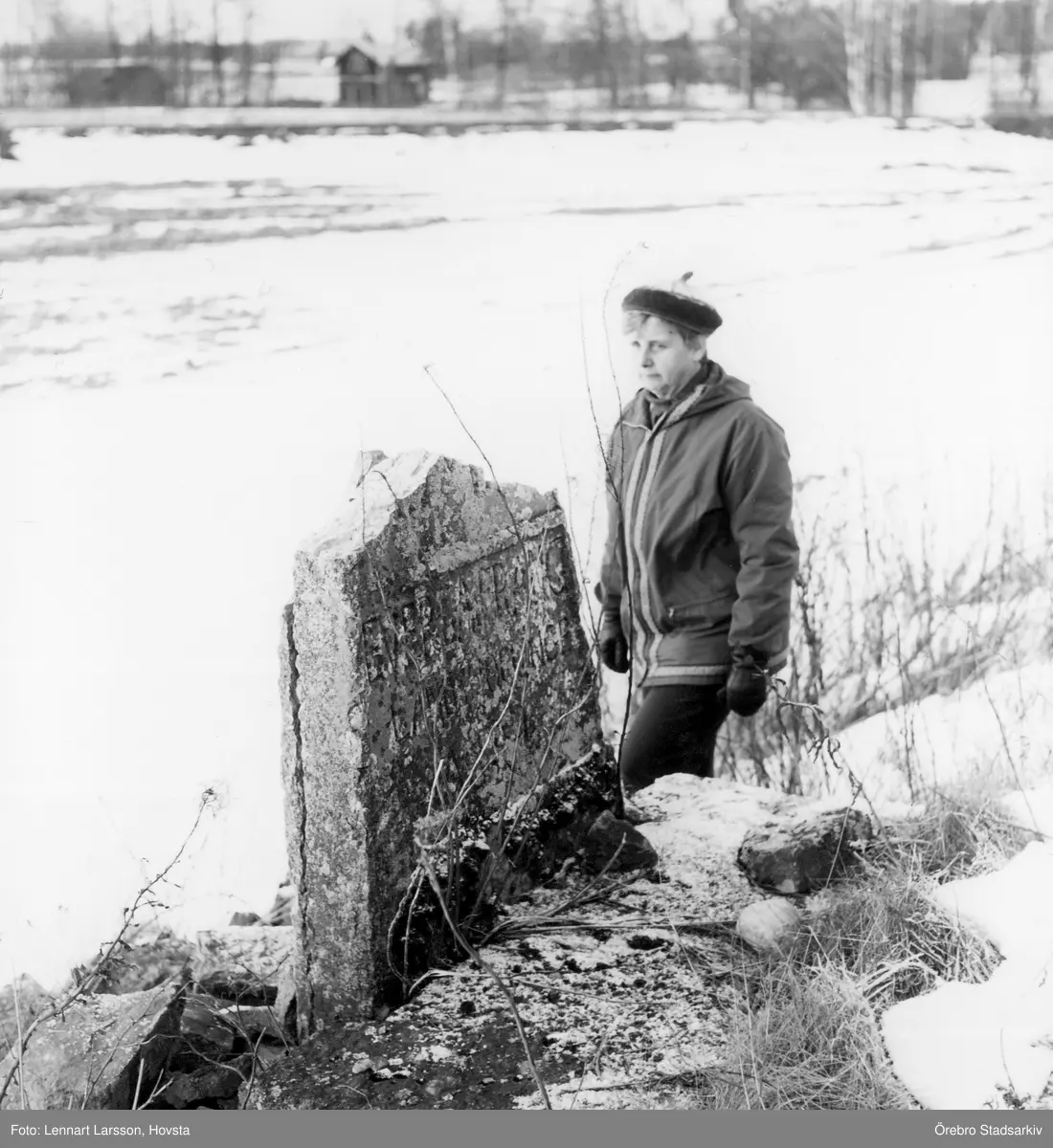 Kvinna vid milsten vid Åsbro i Lerbäck, 1976