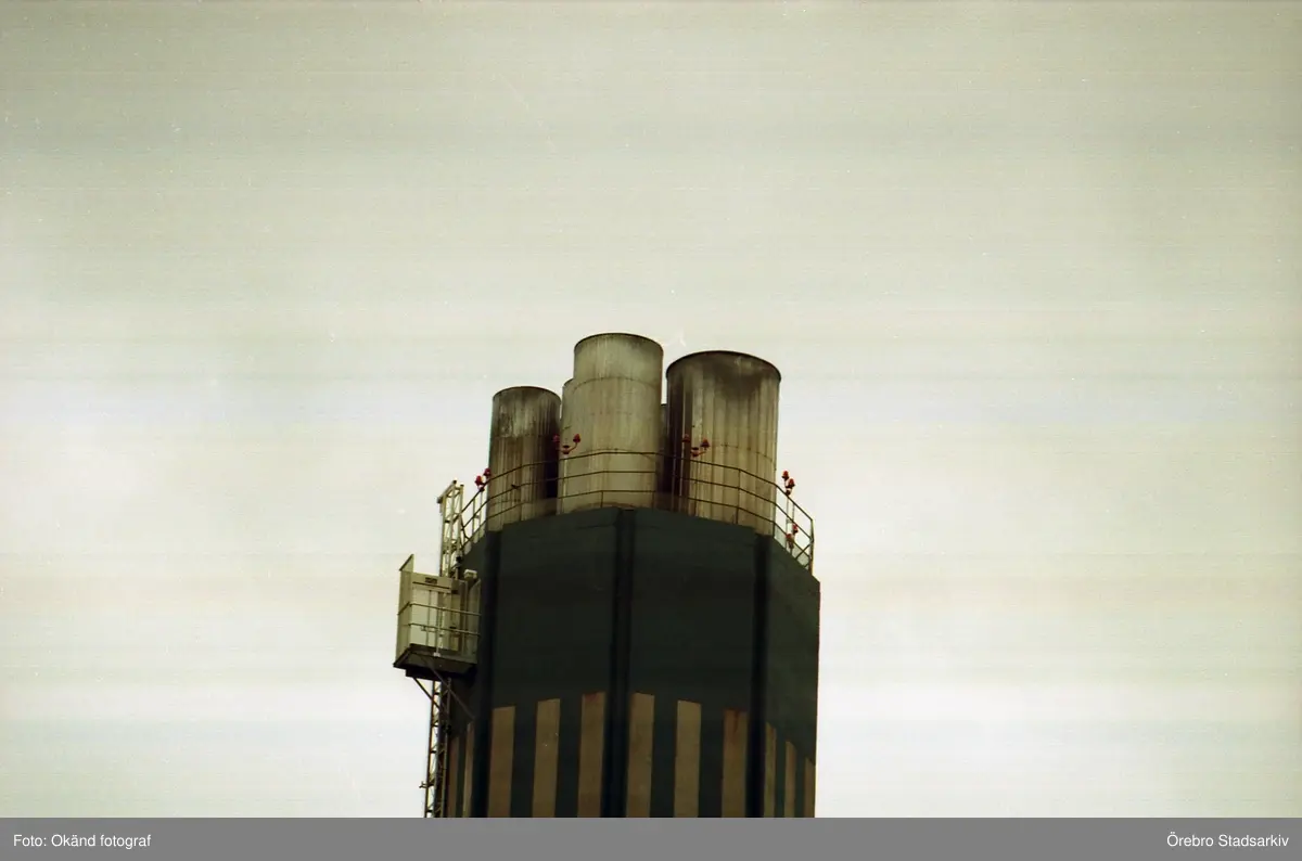 Närbild på övre delen av skorstenen på Åbyverken, 1990-tal