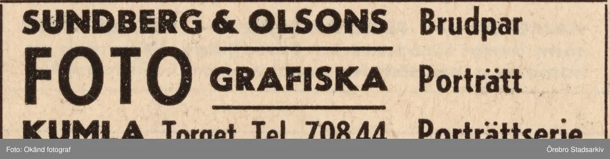 Reklam för Sundberg & Olsson Fotografiska, 1960