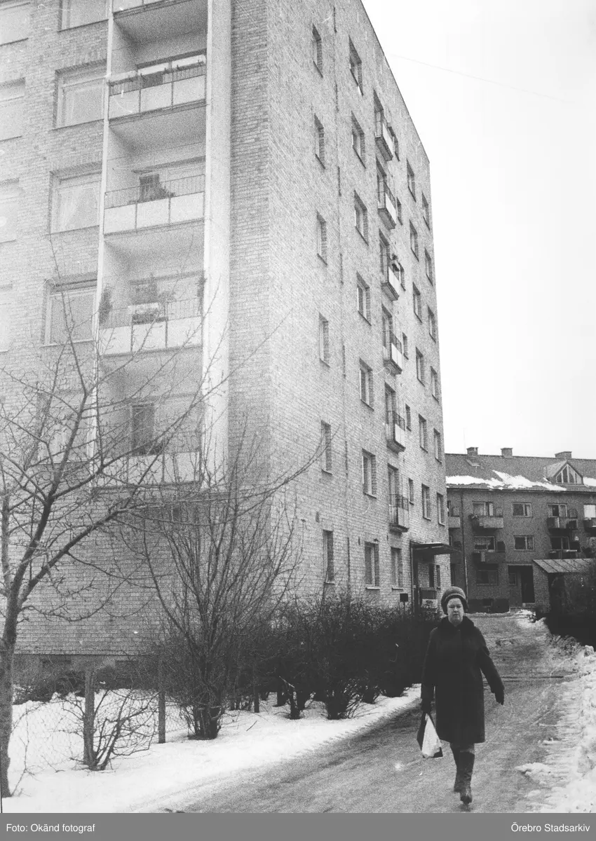 Boende vid höghus på Hjortstorpsvägen, 1960-tal