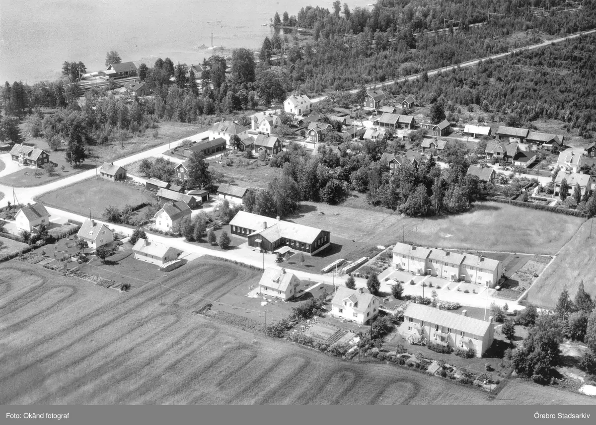 Flygfoto över Kilsmo samhälle från öster, 1958