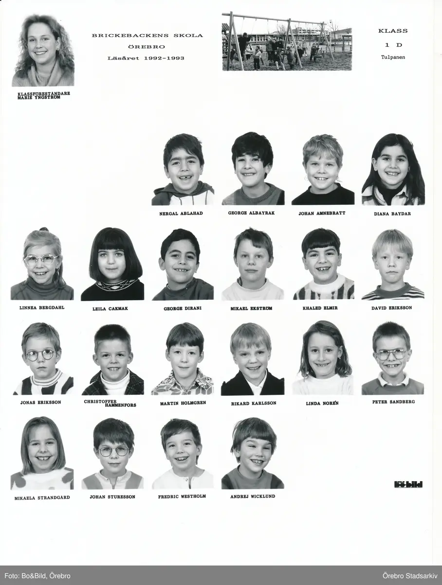 Klass 1D Tulpanen Brickebackens skola, 1992-1993