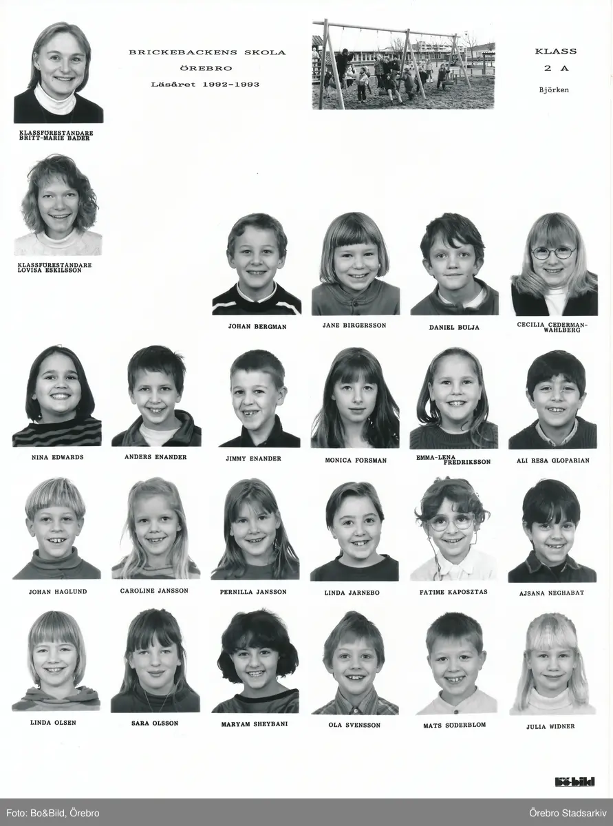 Klass 2A Björken Brickebackens skola, 1992-1993