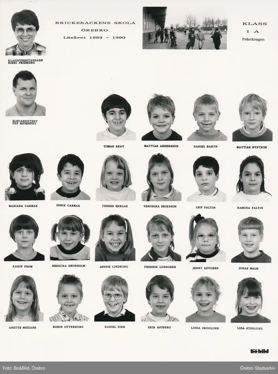 Klass 1A Prästkragen Brickebackens skola, 1989-1990