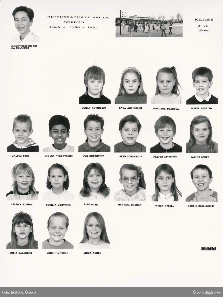 Klass 3A Björken Brickebackens skola, 1990-1991