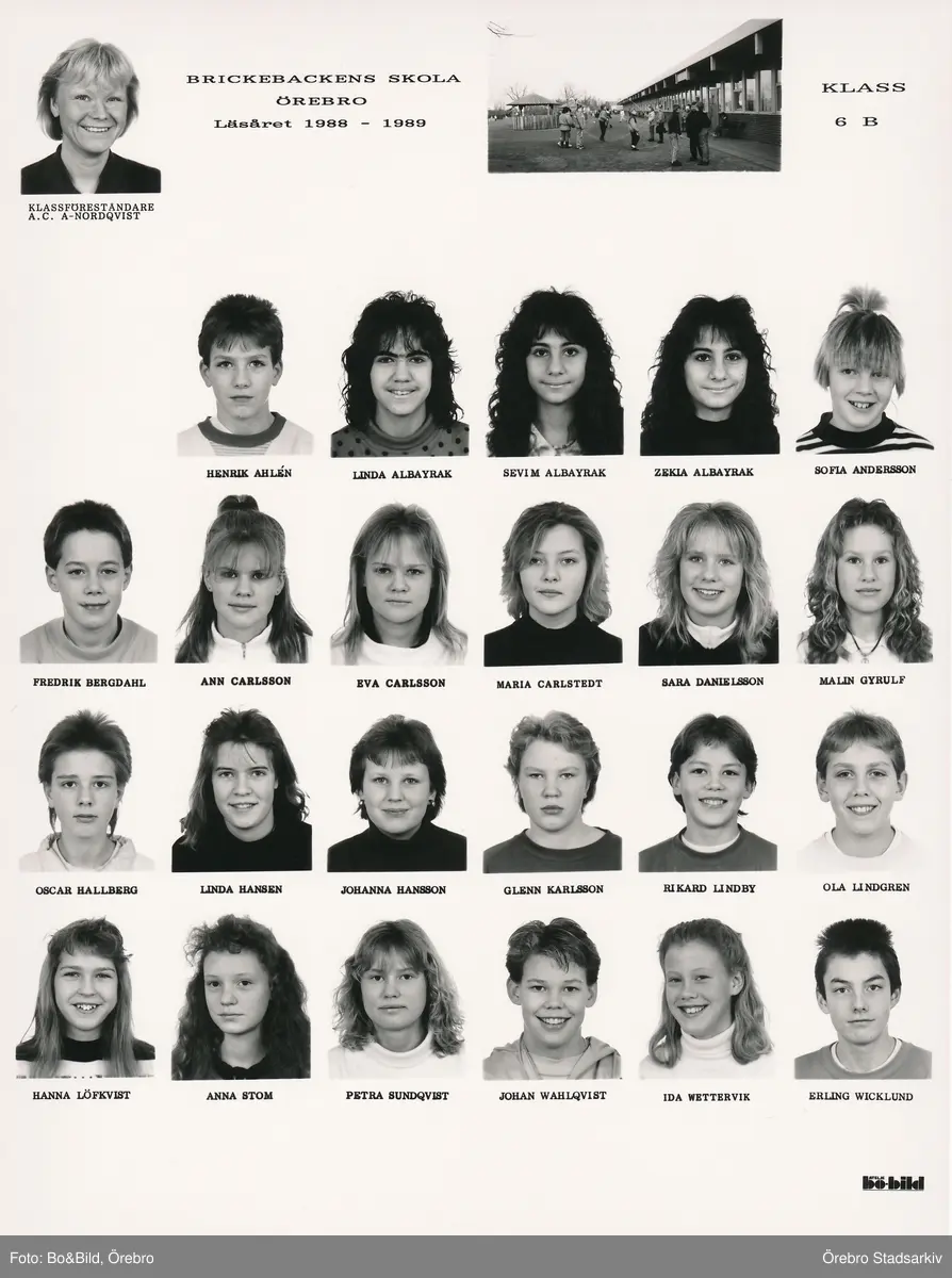 Klass 6B Brickebackens skola, 1988-1989
