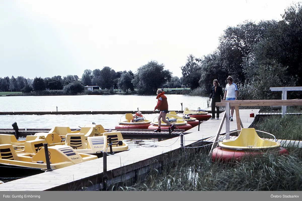 Barn som ska köra "Bumper-boats" på Gustavsvik, 1985