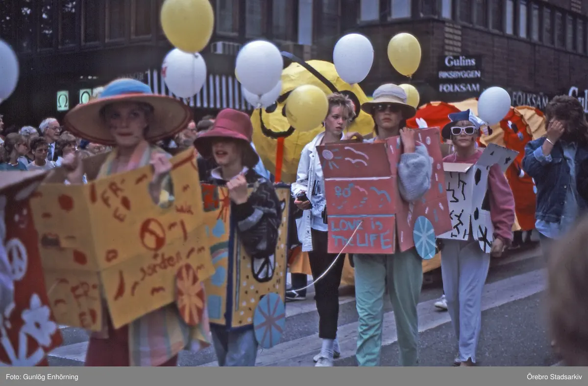 Kartongklädda ungdomar på Örebro karnevalen, 1986