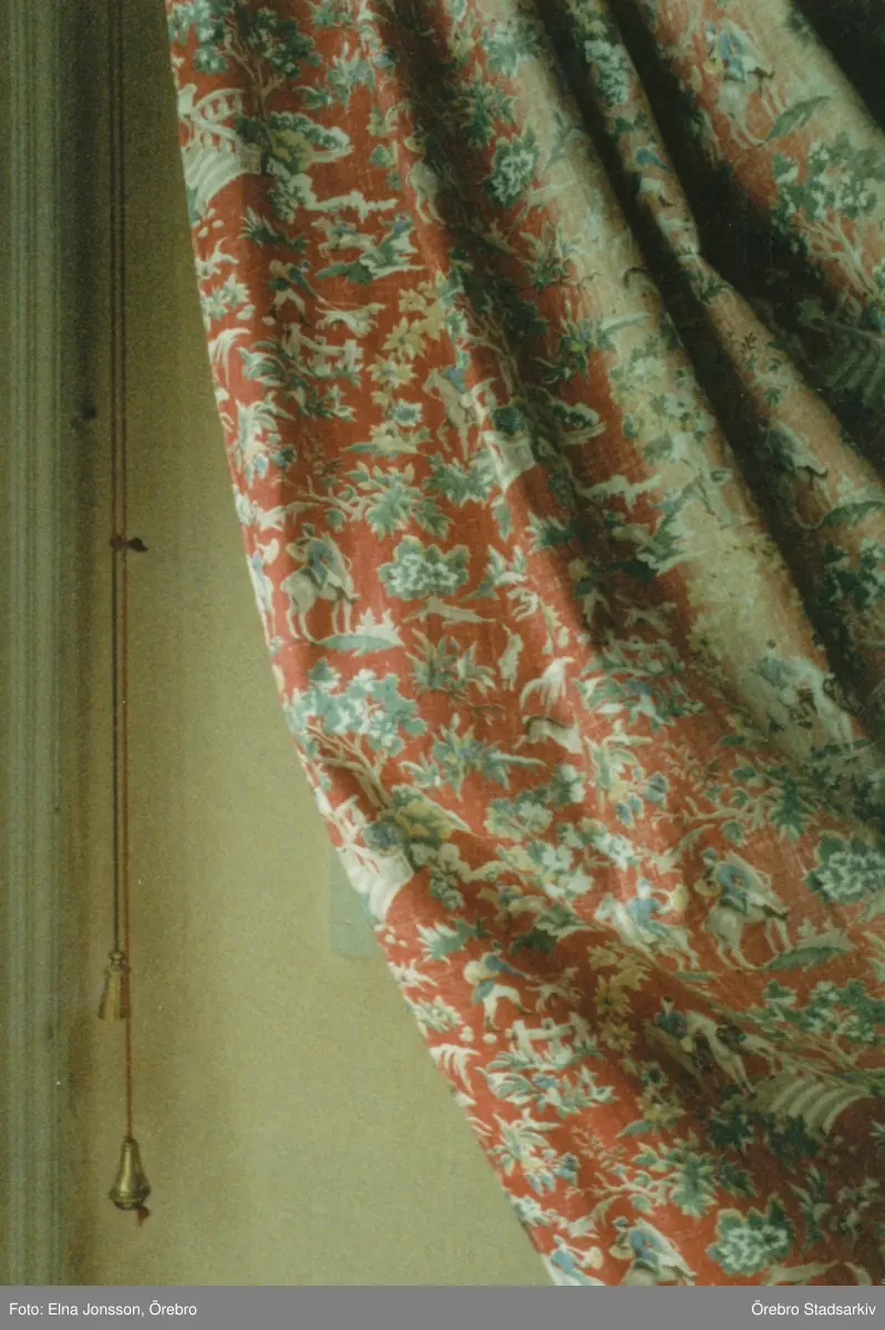 Röda gardiner i Lundmarkska villan, ca 1985