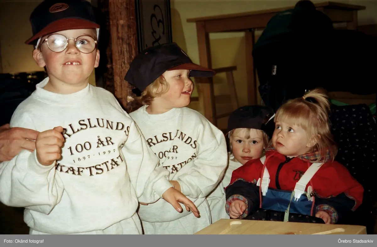 Besökande barn i jubileumströjor på Tom Tits i Tekniska kvarnen, 1997