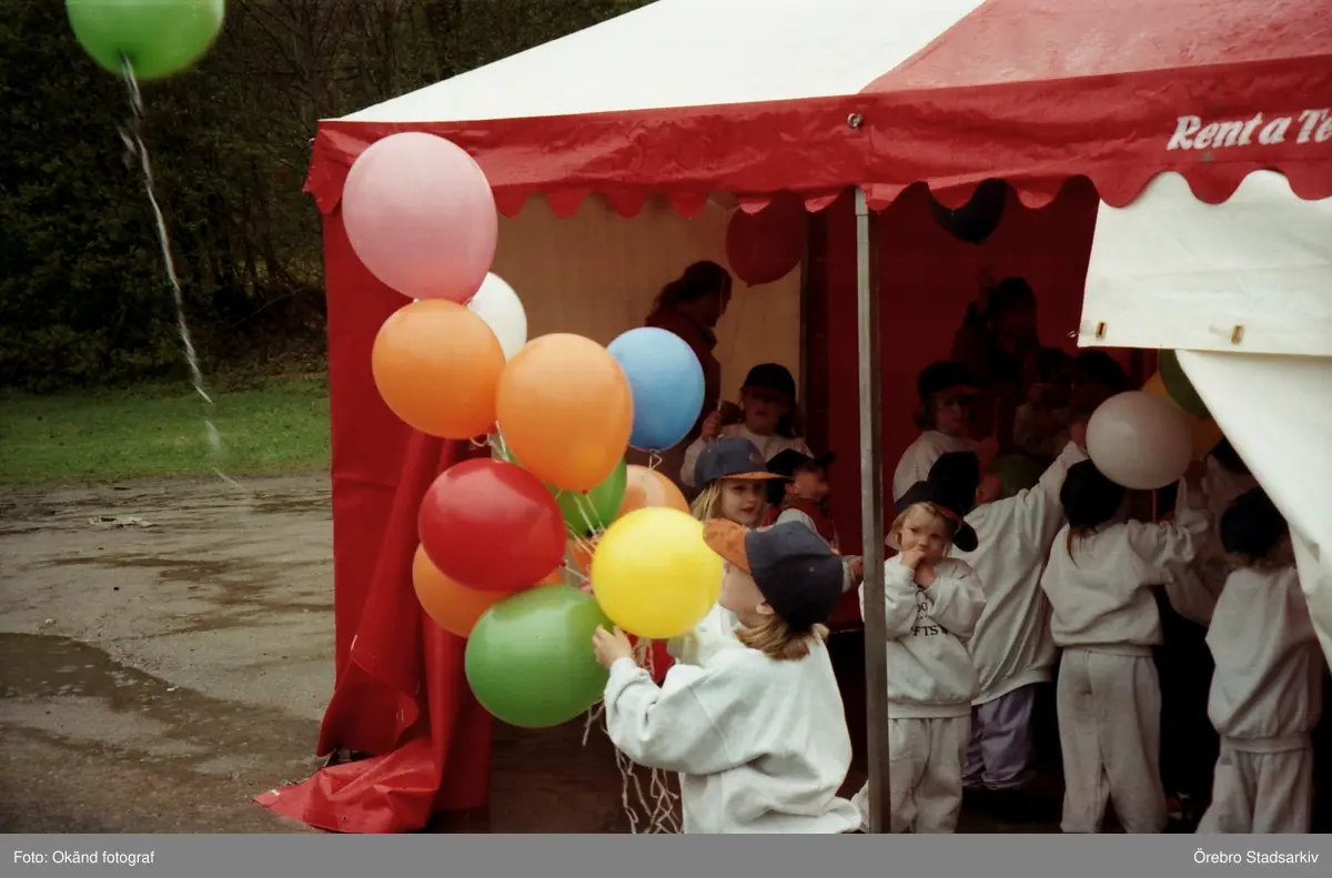 Barn med ballonger på 100-årsfirande av Karlslunds kraftstation, 1997